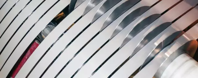 精密不銹鋼帶的寬度大都在610mm以下。因為使用的場合比較精細,終端用戶使用之前通常還需分條(見下圖),如果寬度再加大,生產難度增大而實際意義不大。
